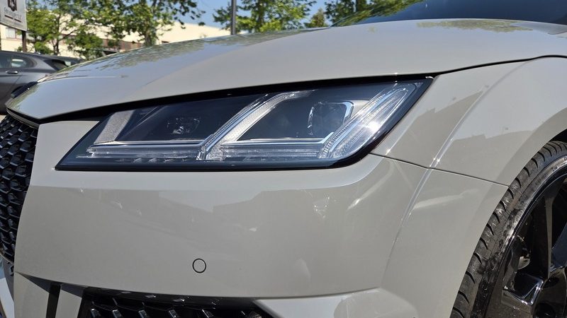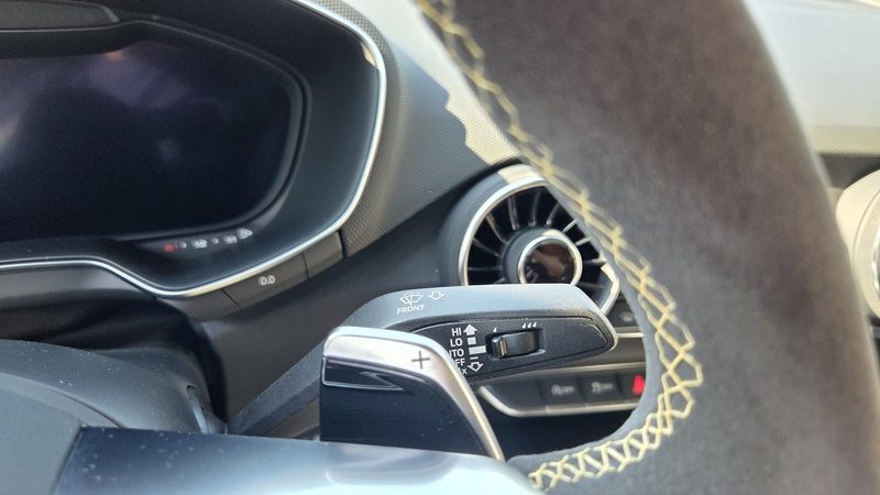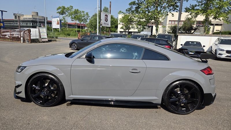 Pacchetto Nero Lucido: Loghi Audi, badge TT RS e calotte degli specchietti sono rifiniti in Total Black.